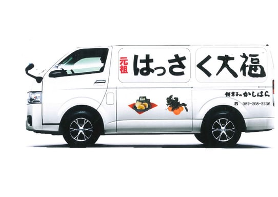 元祖はっさく大福と大きく書かれたこの車、もし見かけたら静か-に応援して下さいね。